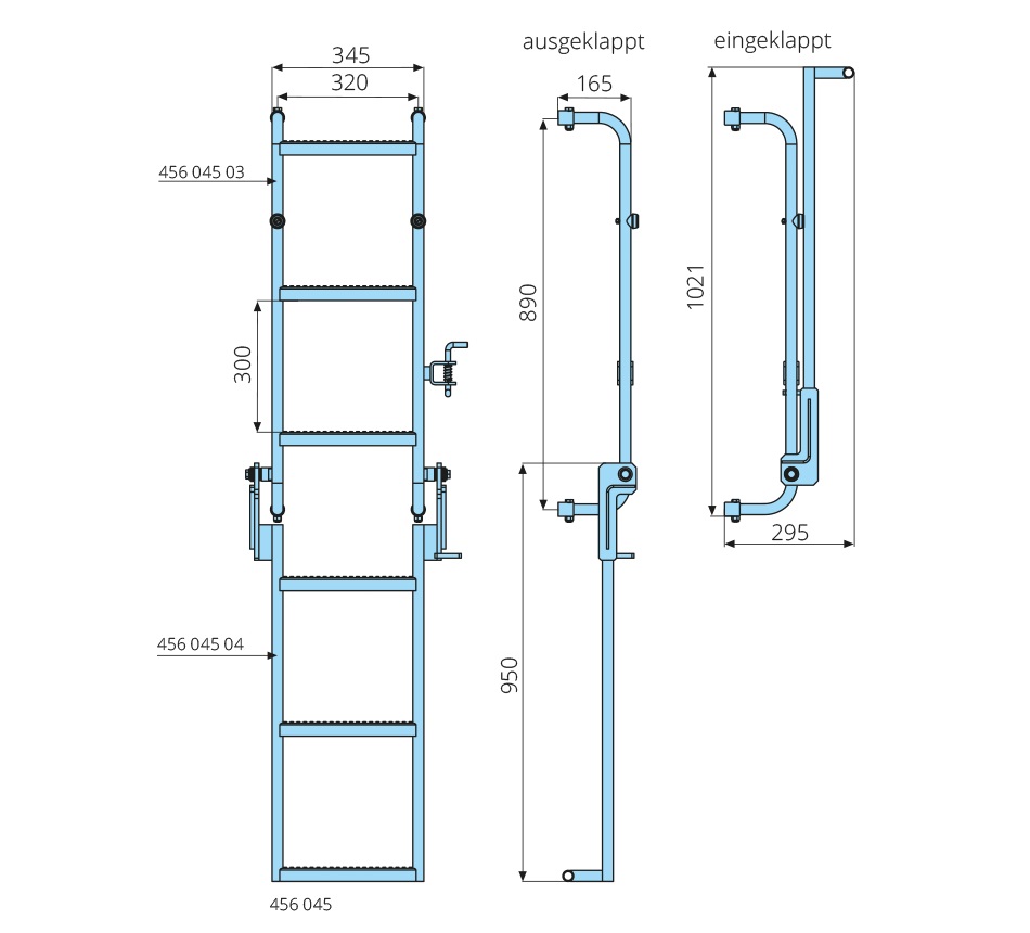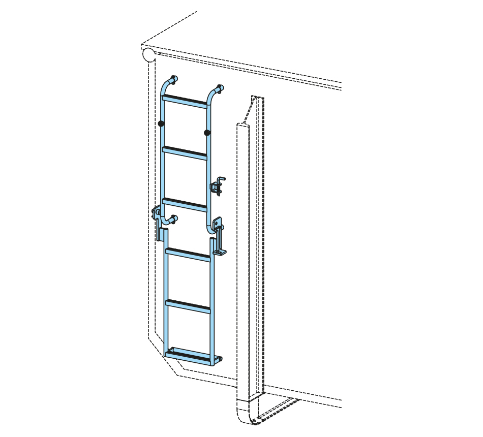 6 rungs, 1748mm, with spring bolt & bracket, for bolted mounting, galvanized