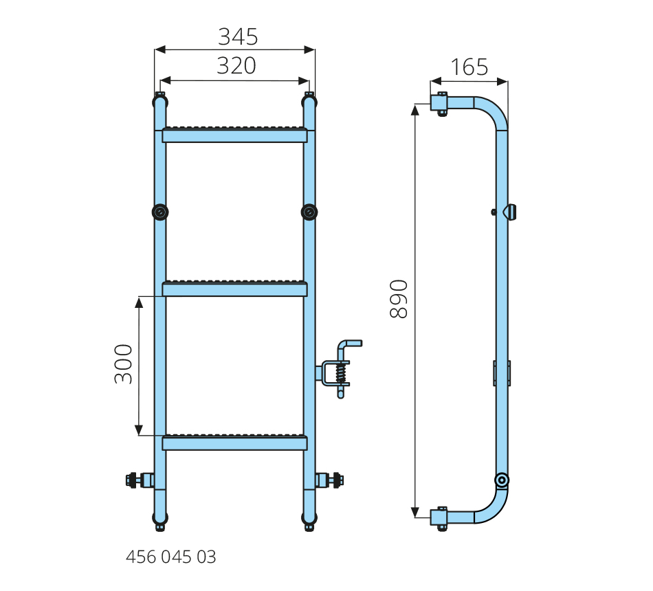 Folding ladder top890mm, with spring bolt & bracket, galvanized