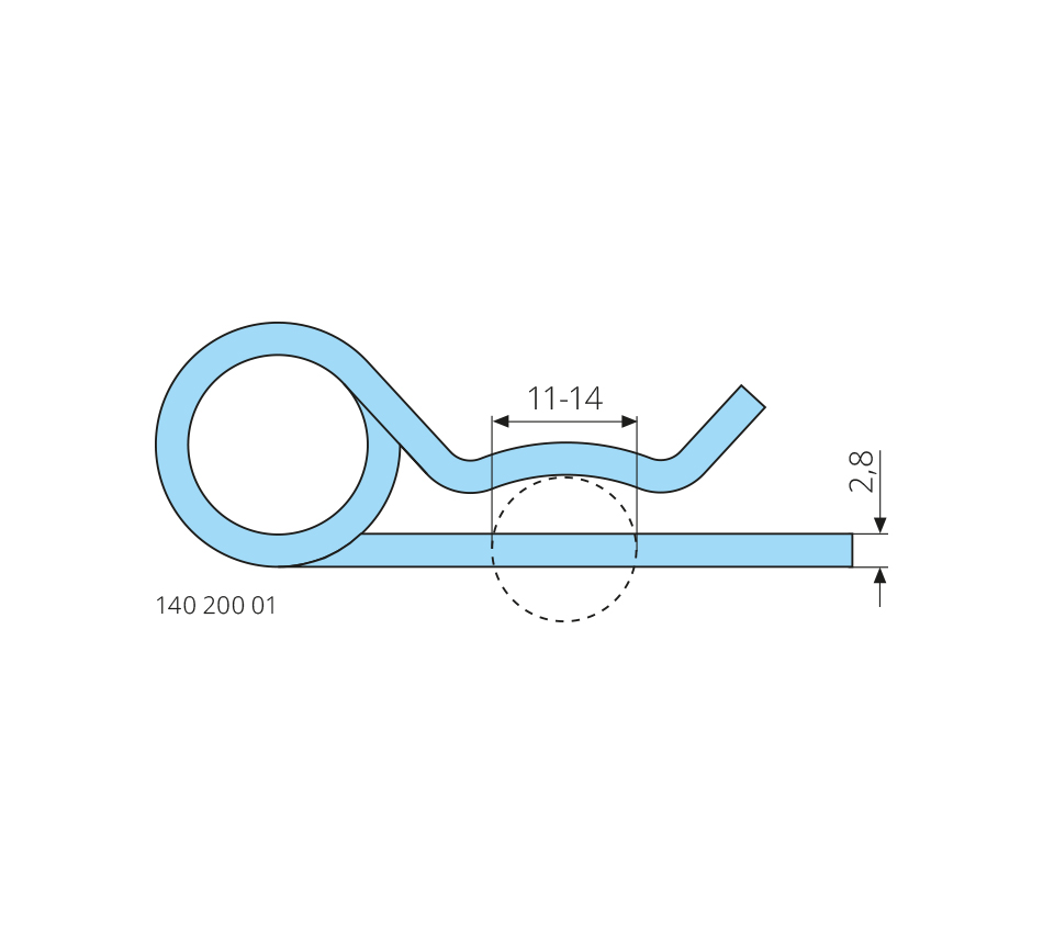 pour axe dia.=11-14mm, fil dia.=2,8mm, DIN 11024, zingué