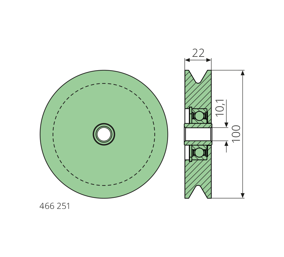 Poulie guide-fil10,1-100-22mm, avec roulement, type BOLLEGRAAF