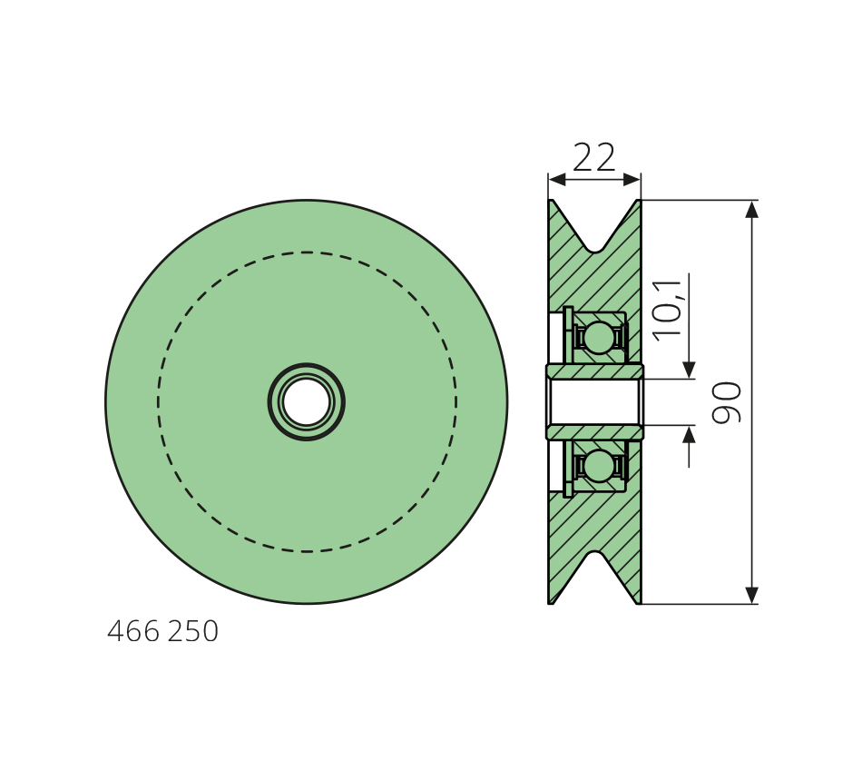 Poulie guide-fil10,1-90-22mm, avec roulement, type BOLLEGRAAF