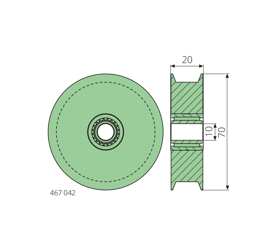 Poulie guide-fil10-70-19,5mm, 42CrMo4, avec roulement à aiguilles, type PAAL