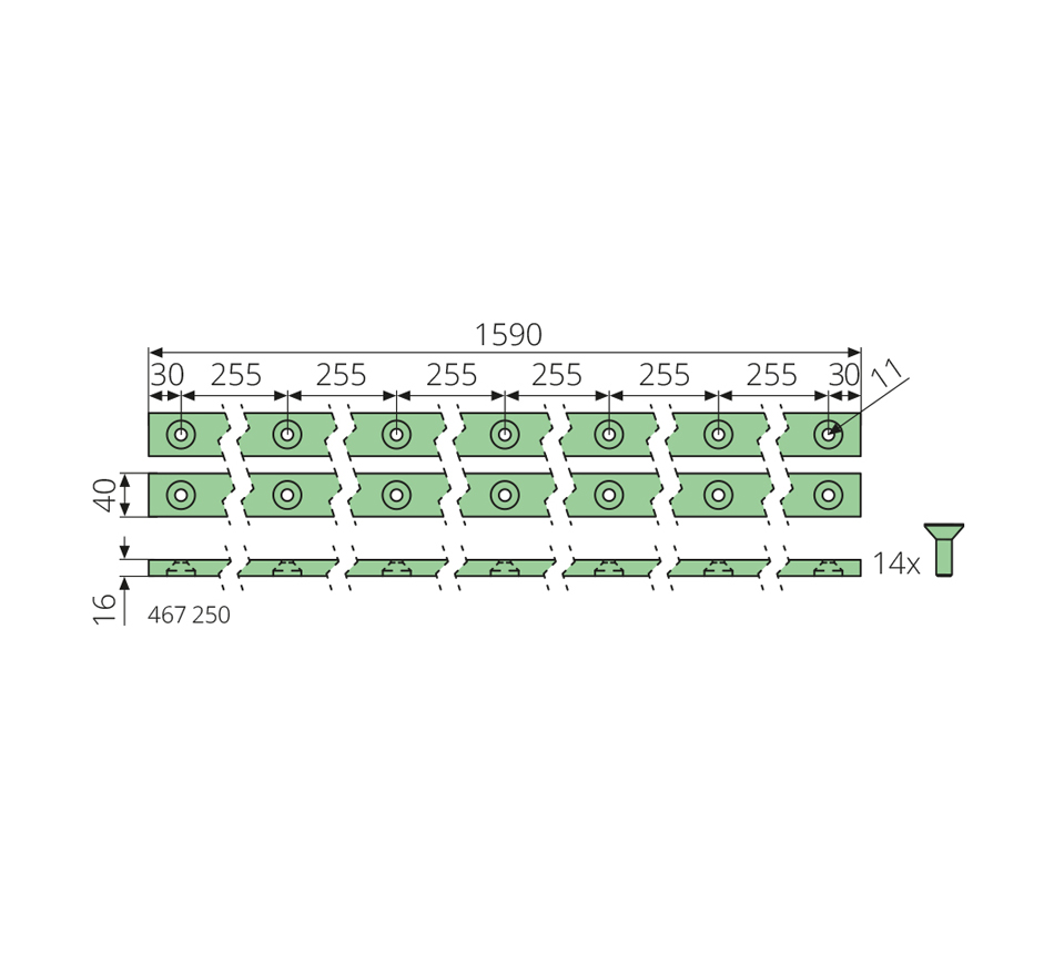 40x15x1590mm, 42CrMo4, 2 parts, with screws, type PAAL