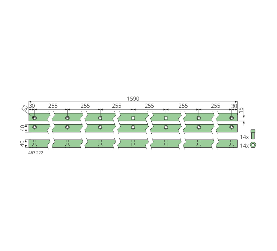 40x40x1590mm, 42CrMo4, 2 parts, with screws & nuts, type PAAL