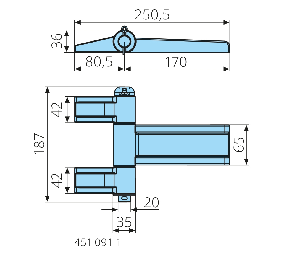35x187x250,5mm, right, forged, heavy duty version, lubrication, grease fitting flush