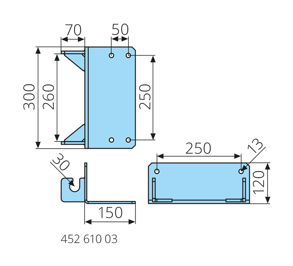 300x220x120mm, for 2,5m³ wheelie bins, galvanized