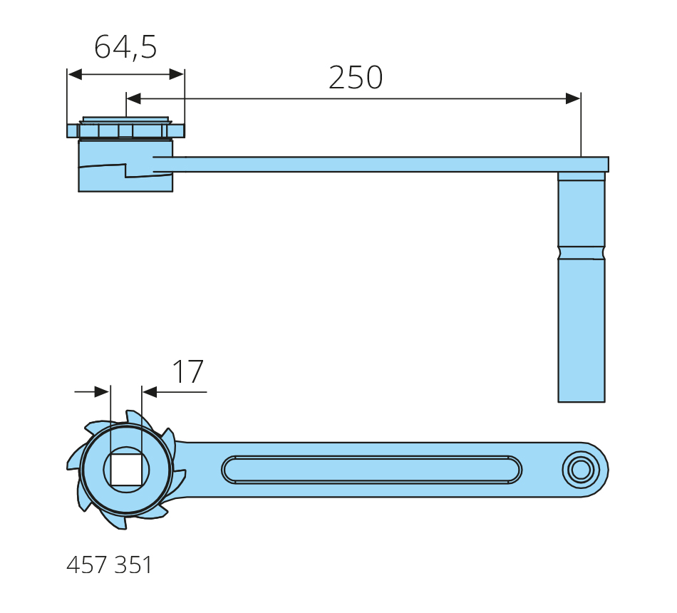 L=250mm, square 17,2mm, D=65mm, galvanized
