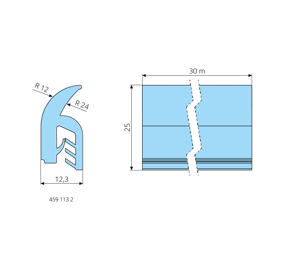 Protection des bords EPDM compacteur12,3x25mm, EPDM - noir avec noyau métallique, paquet de 30m