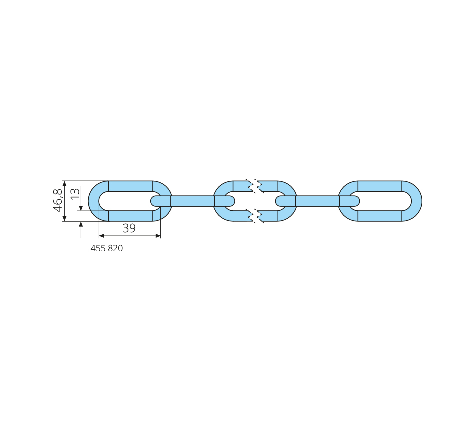NG 13, WLL 5,3t, EN 818-2, chain tested, non-calibrated, short linked, corrosion resistant, silver coloured, chains for fitting in container lashing