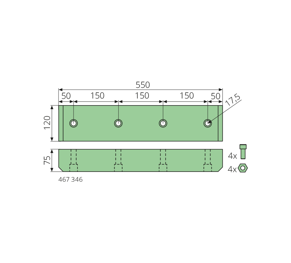 550x120x75mm, PE, with screws & nuts, type PAAL