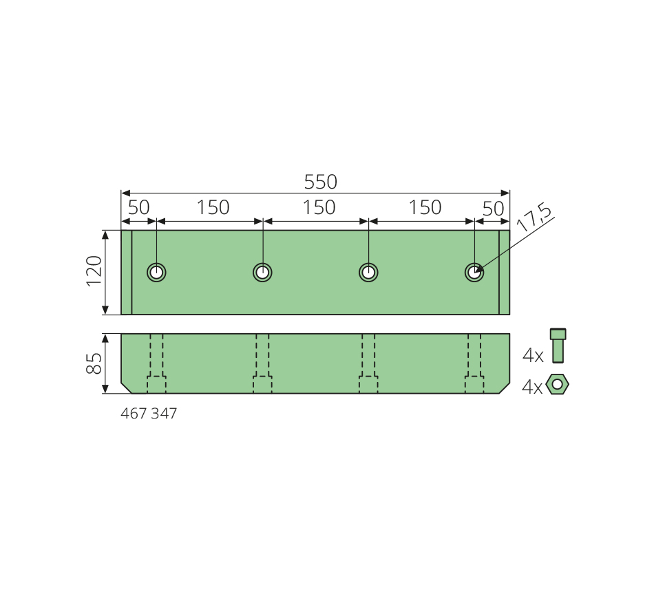 550x120x85mm, PE, with screws & nuts, type PAAL