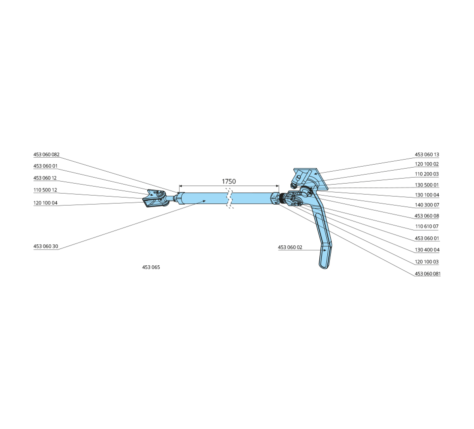 Levier de fermeture M12 completTube L=1750mm, selon BG