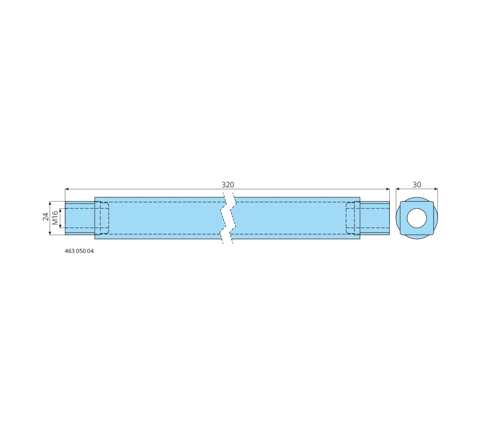 TubeL=320mm, avec écrous carrés à souder M16 filetage à gauche & à droite