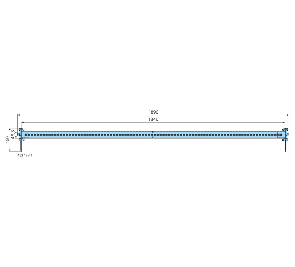 48,3x1840mm, with external pin, plates & central stop, 3x spring bar 1790x30x3mm, preassembled