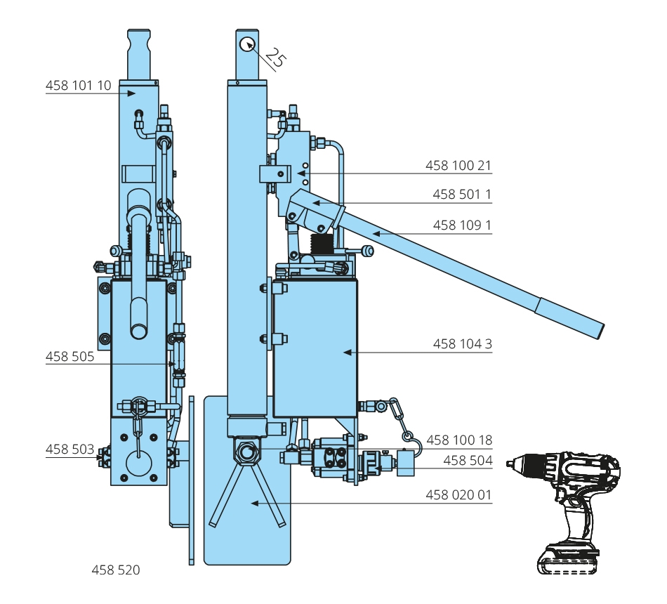 stroke 500mm, mounting left, adapter on the side, double-acting, 25cm³, without cordless drill