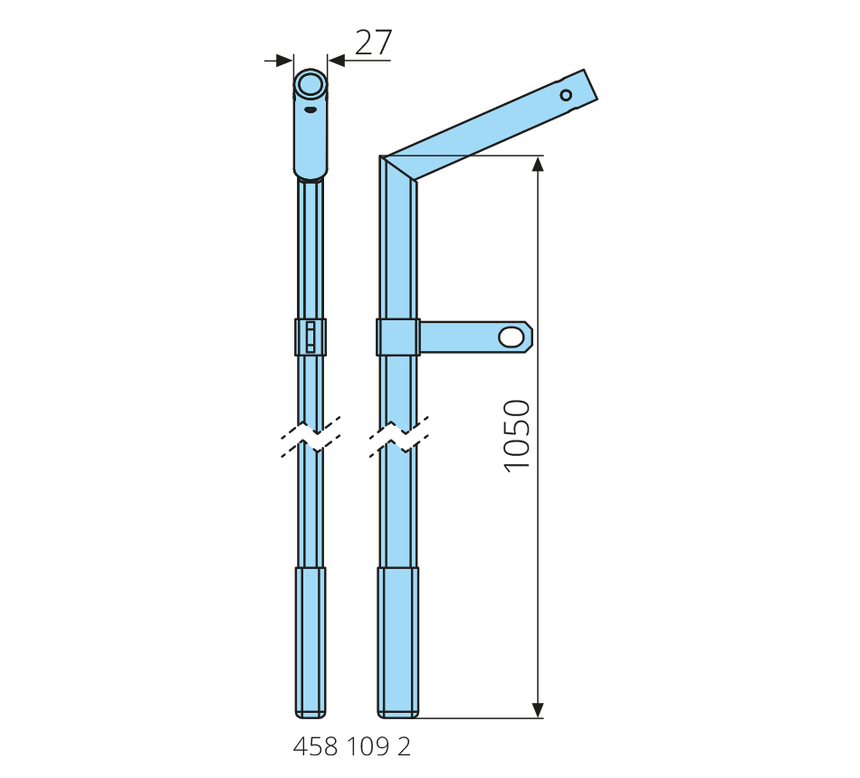 27x1050mm, round, galvanized, with padlock fitting