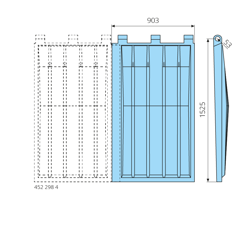 1525x903mm, right, plastic, divided/overlapping, orange (similar to RAL 2010)