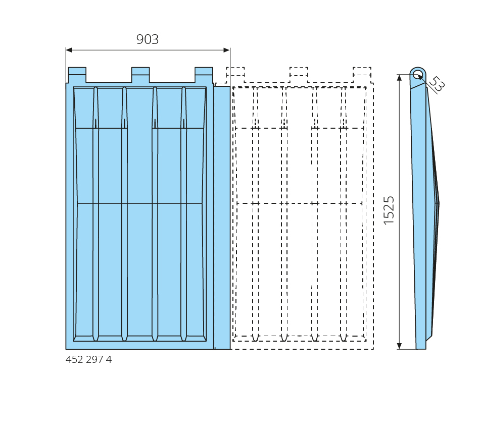1525x903mm, left, plastic, divided/overlapping, orange (similar to RAL 2010)