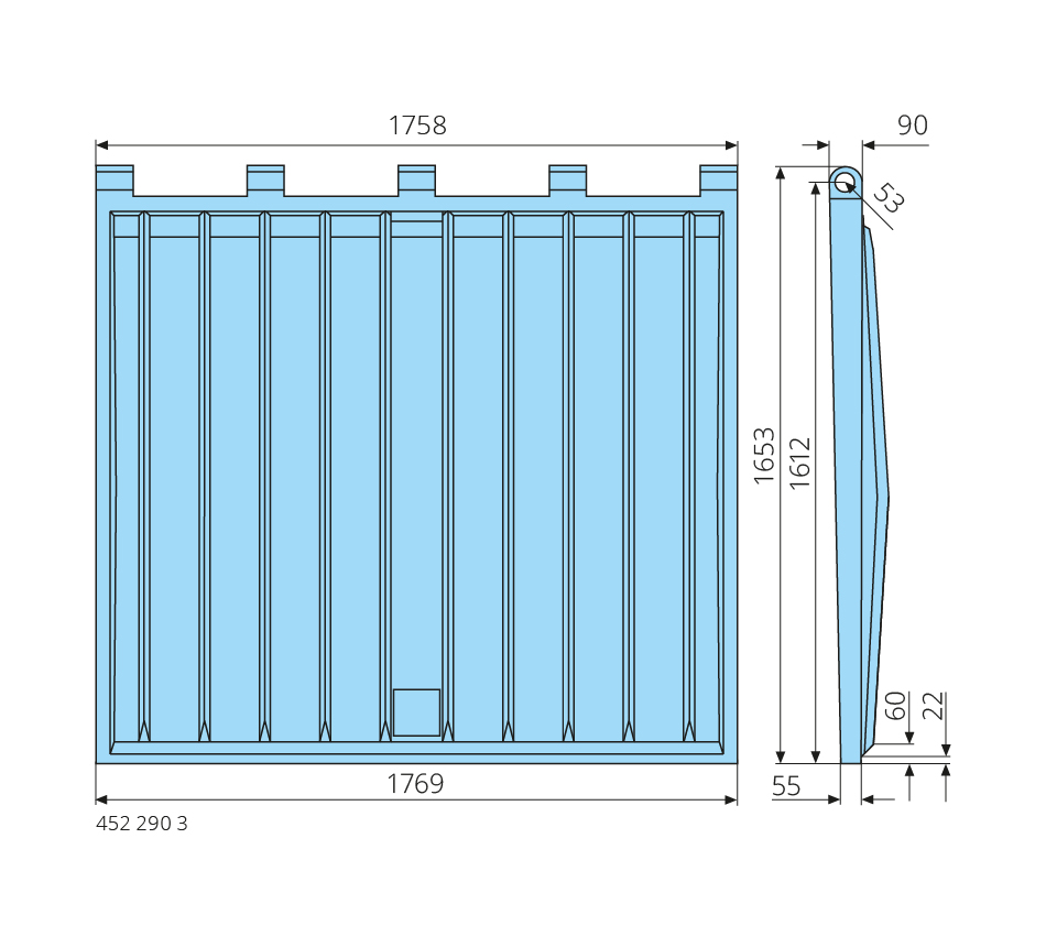 1769x1653mm, plastic, without bore & bushings, red (similar to RAL 3020)