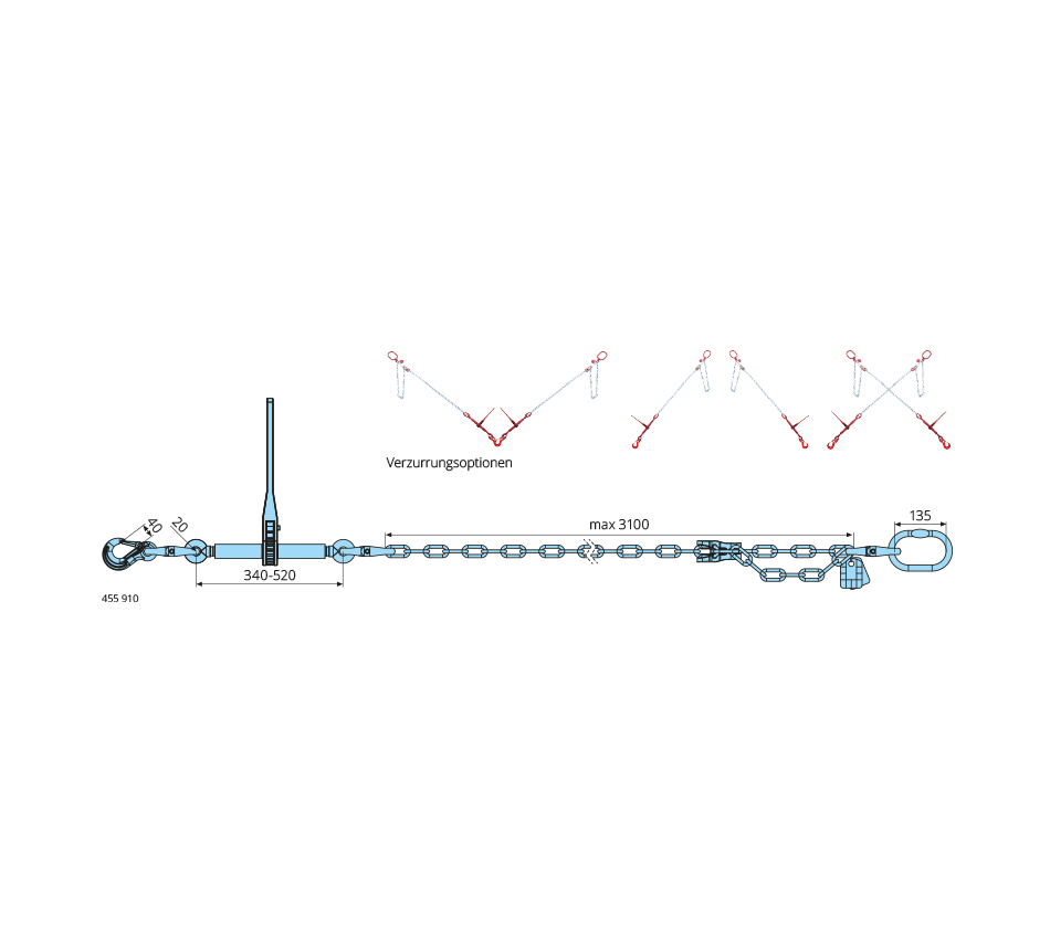 NG 10, GK 8, lashing capacity 6.300daN, maximum effective length 3100mm/strand