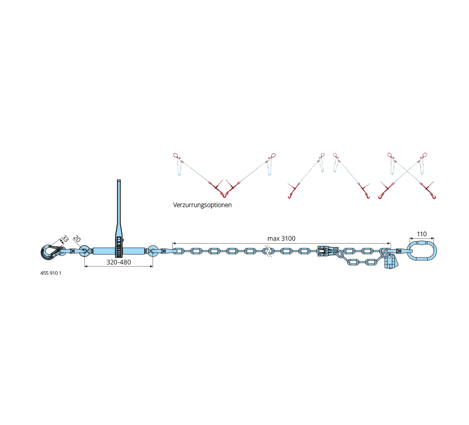 Container lashingNG 8, GK 8, lashing capacity 6.300daN, maximum effective length 3100mm/strand