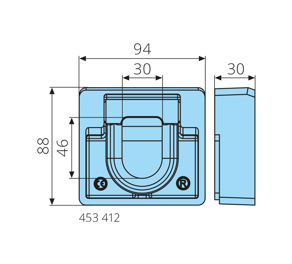 88x94x30mm, LC 2500daN (2,5t), raw, with drain hole