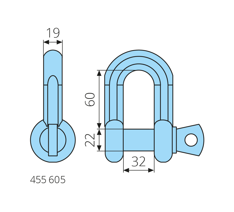 taille nominale (NG) 3/4″, charge max (WLL) 4,75t, à haute rigidité, avec boulon fileté, sécurité minimale cinq fois, étrier galvanisé à chaud, goujon laqué
