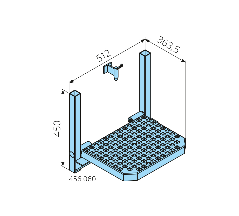 Marchepied escamotable514x450x363,5mm, apprêté, grille de marchepied galvanisée, avec verrou à ressort 456 060 10