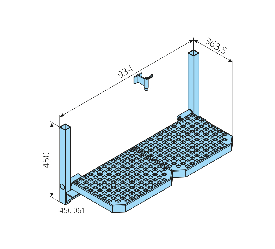 Marchepied escamotable934x450x363,5mm, apprêté, grille de marchepied galvanisée, avec verrou à ressort 456 060 10