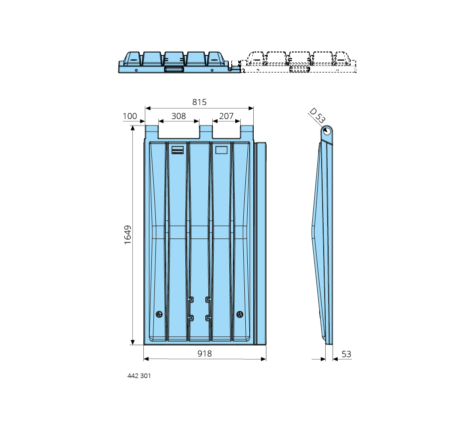 918x1649mm, links, Kunststoff, geteilt/überlappend, schwarz
