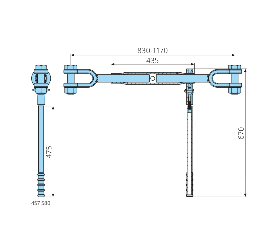 Ratchet with clevisesM40, turnbuckle L=435mm, handle L=465mm, with clevises, galvanized