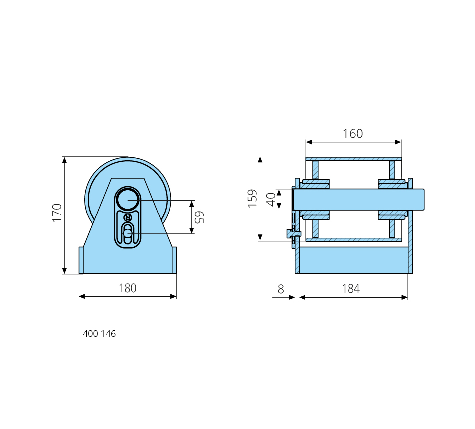 Steel roller complete40-159-160/182, H=170mm, PA bushings, shaft screwed, primed