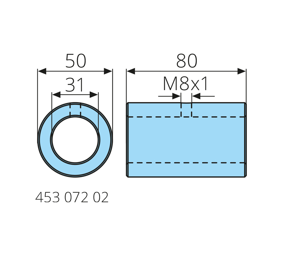 31-50-80mm, with lubrication M8x1mm, S355J2, for version D=30mm