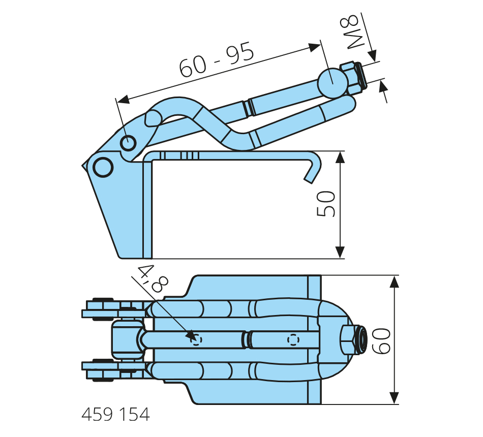 M8, stroke 30mm, S235JR, galvanized, with spring, type FAUN