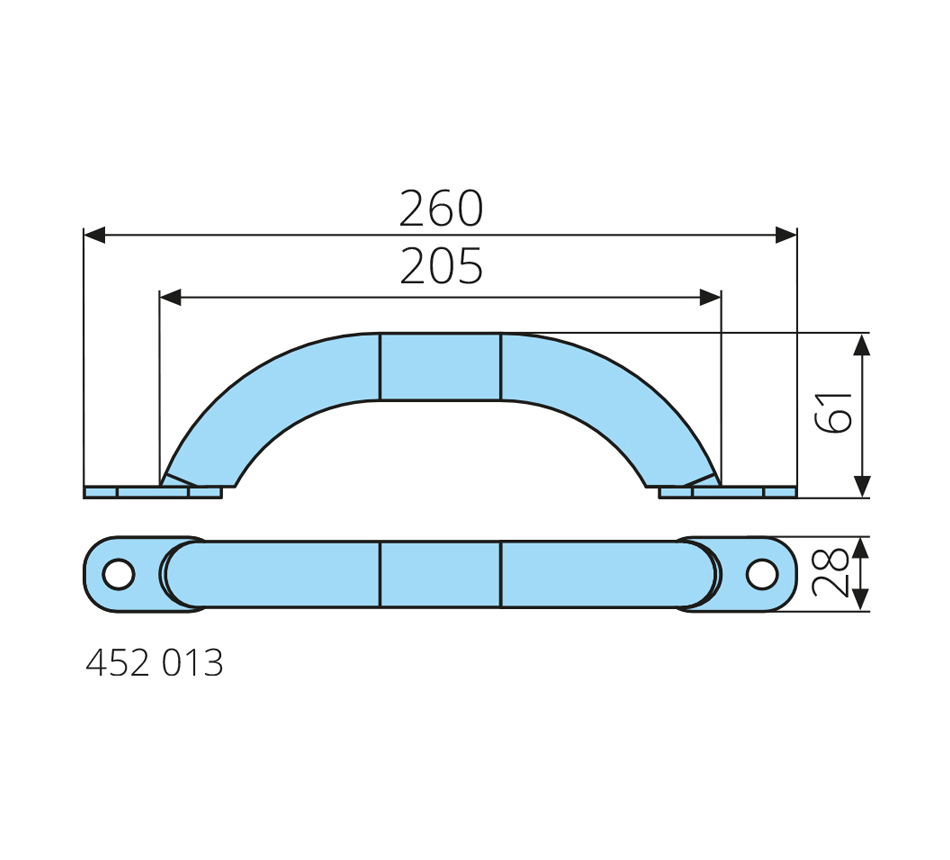 Poignée260x61x28mm, galvanisé, à visser