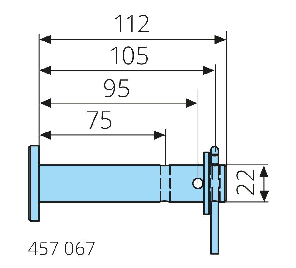 22x112mm, avec goupille & rondelle, 3x forages, pour cylindre avec simple effet supérieur