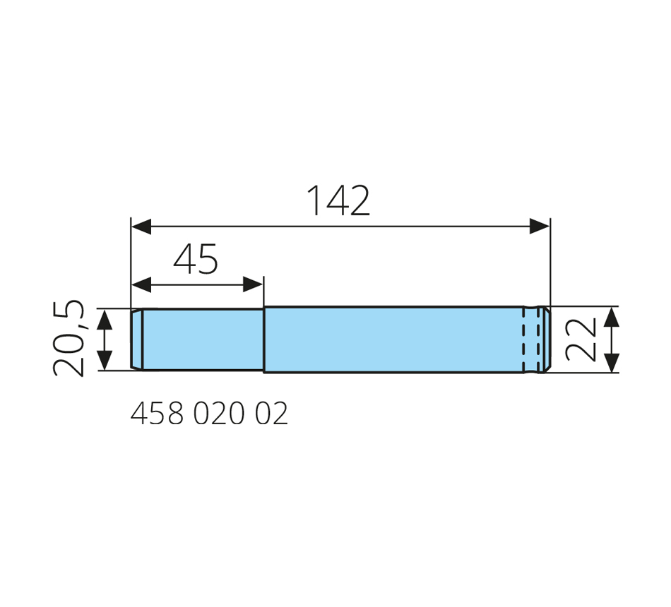 Boulon adaptateur22x142mm, pour support de cylindre d=21mm