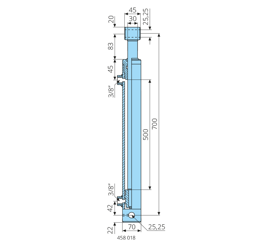 Cylindre hydrauliquecourse 500mm, double effet