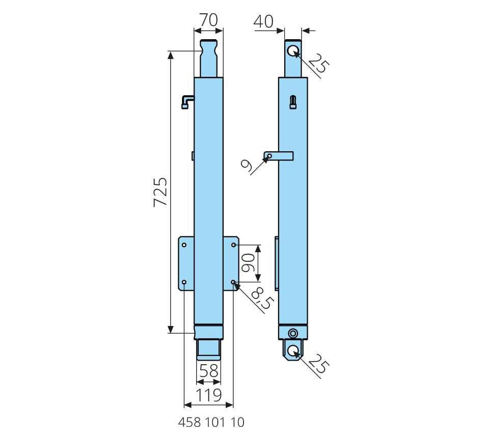 Cylindre hydrauliqueCourse 500mm, double effet, avec plaque de fixation & équerre de fixation, pour 458500 / -520