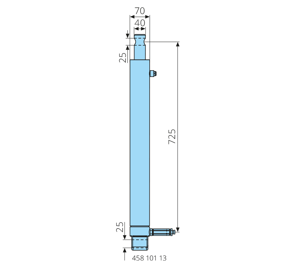 Cylindre hydrauliqueCourse 500mm, simple effet, avec sécurité de rupture de tuyau