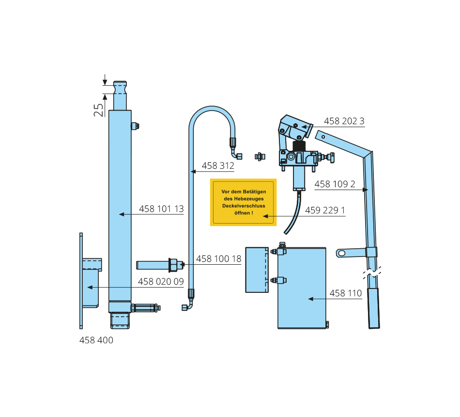 Pompe manuelle pour toit hydraulique avec tuyau Course 500mm, simple effet, pas selon BG