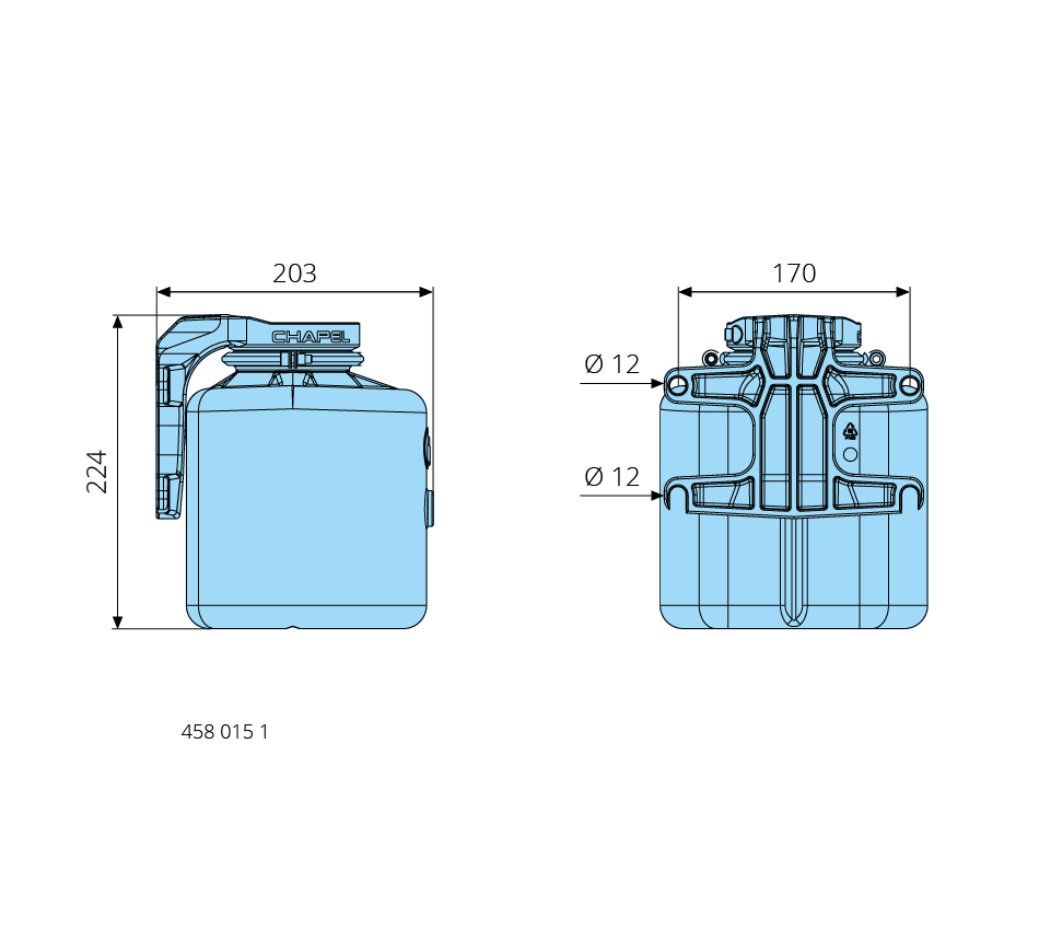 Plastique, 196x199mm, 4 litres, noir, avec kit d'adaptation pour réservoir