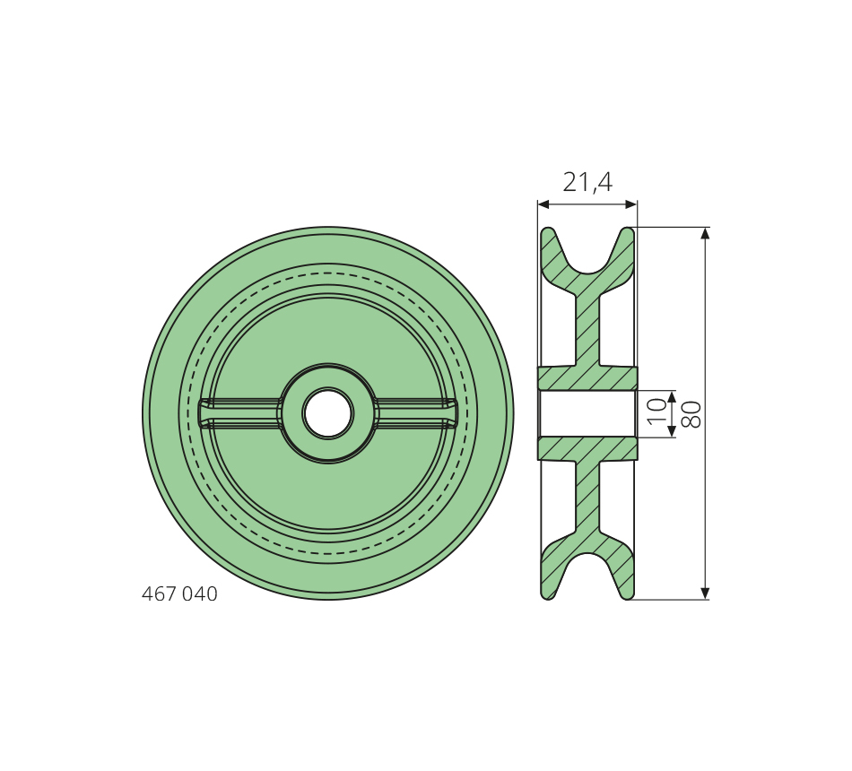 Poulie guide-fil10-80-21,4mm, S355J2, type PAAL