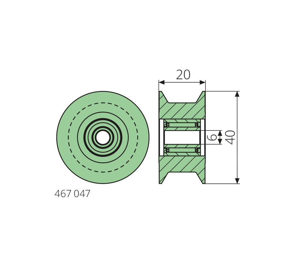 6-40-20mm, S355J2, avec roulement à aiguille, type PAAL, pour support de rouleau réf. 467 111