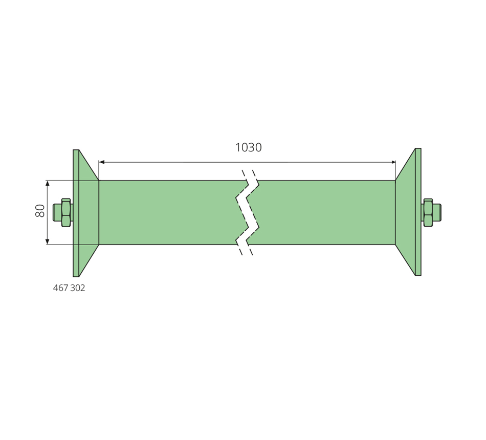 Rouleau de manutenion80x1030mm, avec disques de guidage & écrous, type PAAL