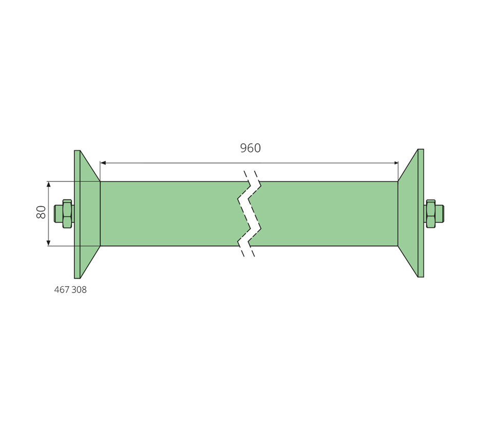 Rouleau de manutenion80x960mm, avec rondelles de guidage & écrous, type PAAL