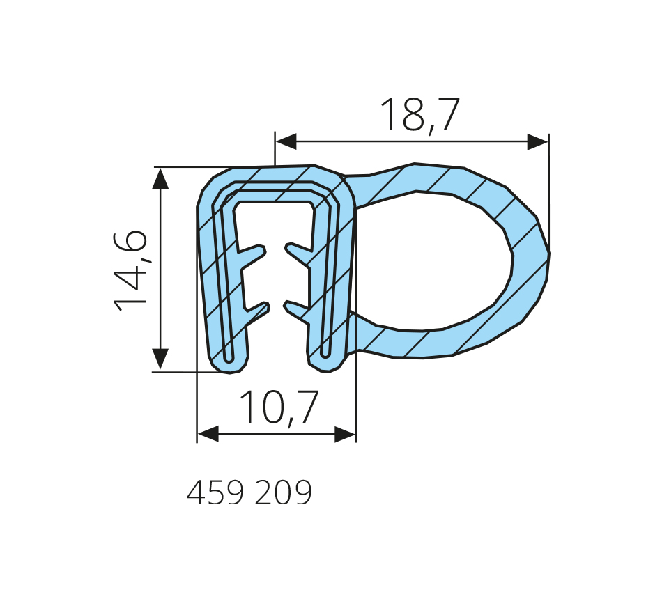 Profil d'étanchéité combiné24x14,6mm, autobloquant, déformable max. 10mm, paquet de 25m