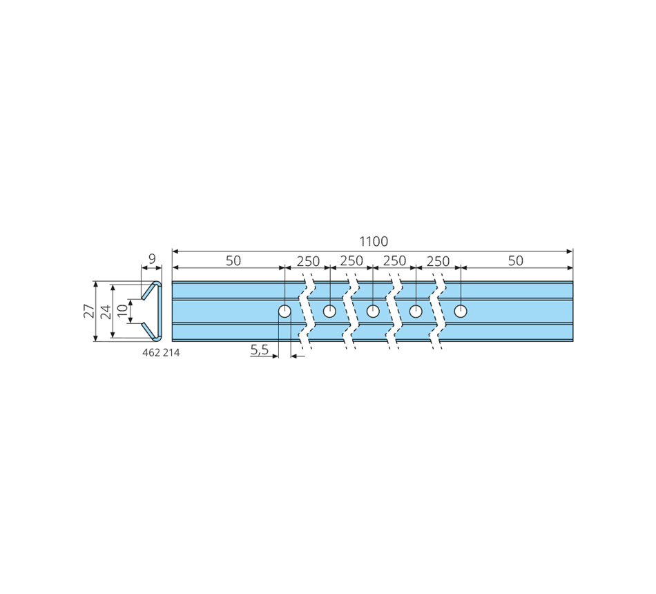 Profilé U pour joint étanche1100x27x9mm, acier galvanisé