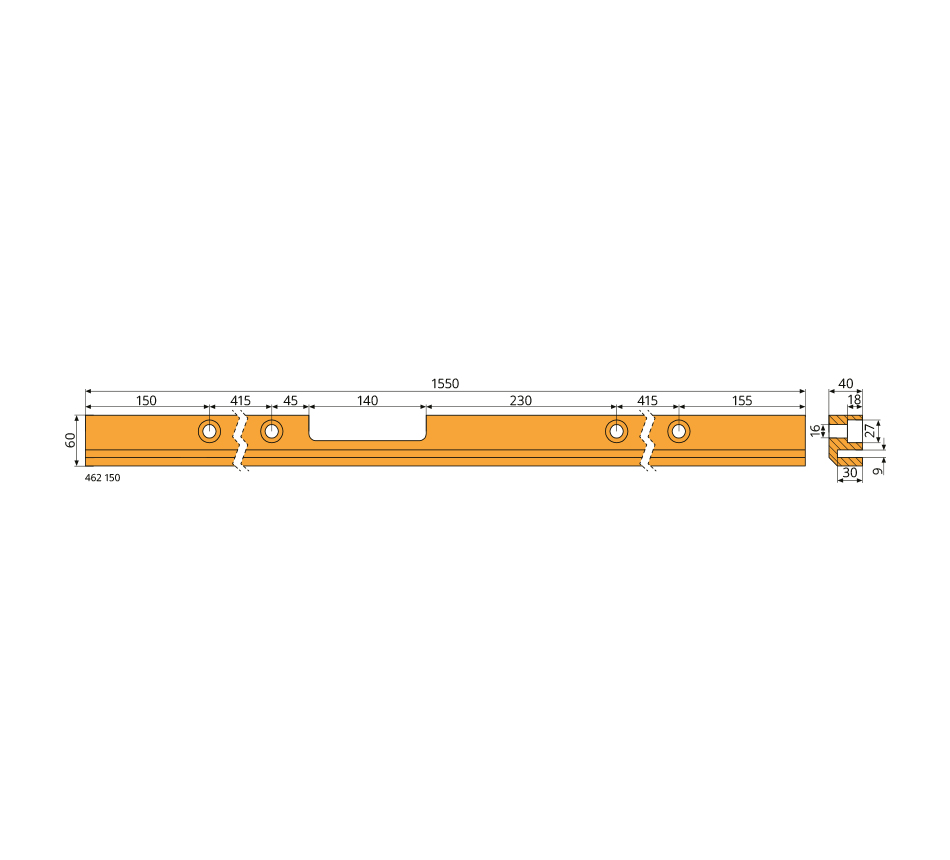 1550x40x60mm, gauche, plastique technique, type HUSMANN