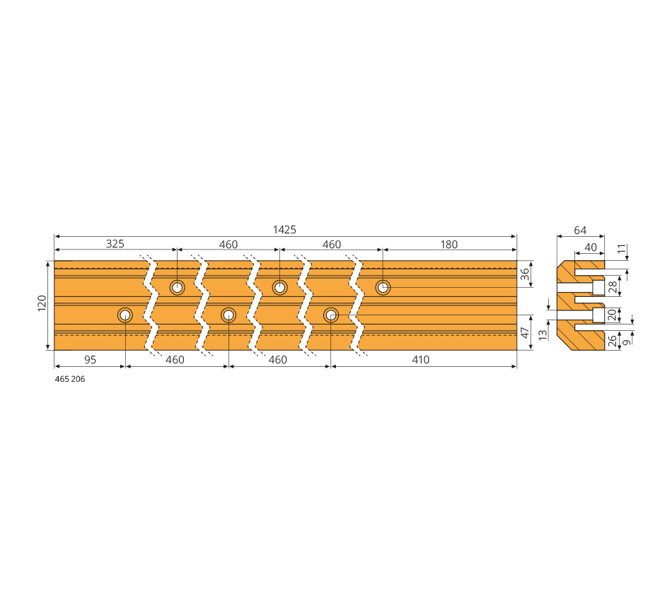 1425x64x120mm, gauche, plastique technique, type WERNER & WEBER